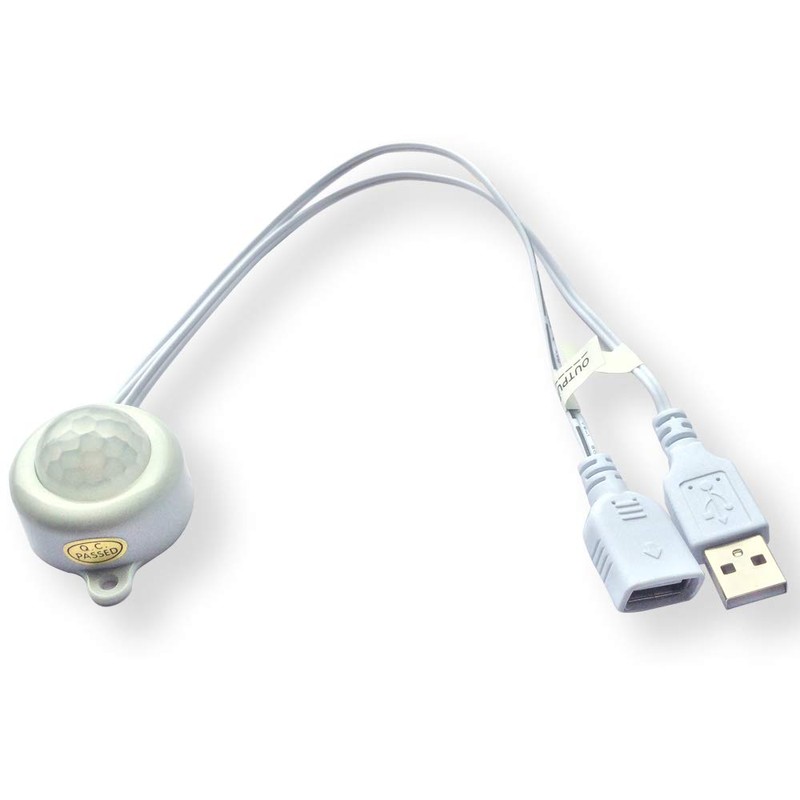 USB 5V DC12-24V 2A PIR Motion Activated Mini Body PIR Sensor Switch with USB Interface Cable for LED Strip Automatic Light Security Camera Pet Monitoring (with Light Sensor, White)