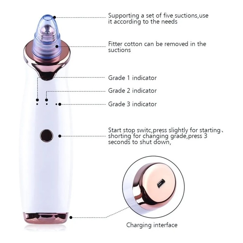 Usb Acné Blackhead Máquina De Succión 5 En 1