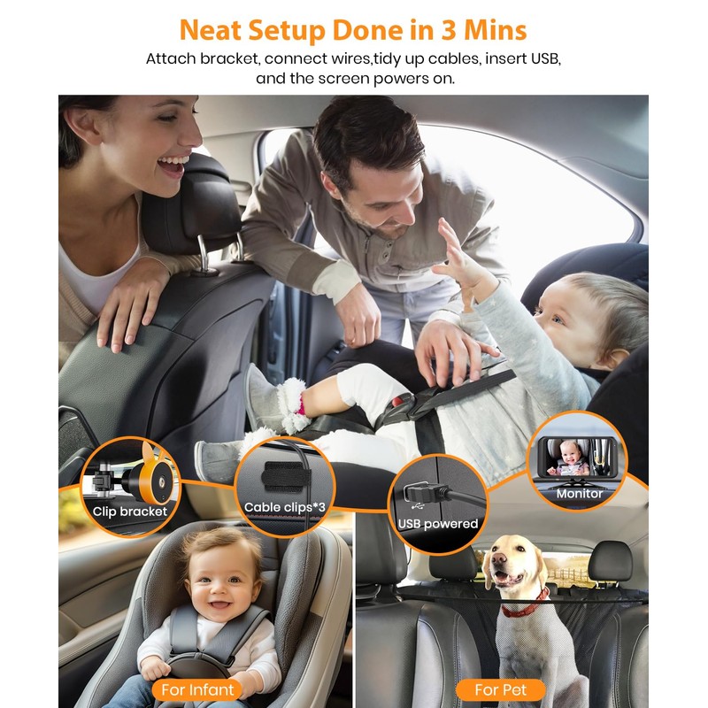 Babyvue USB Baby Car Camera Plug-Play, 4.5" 1080P Easy Setup Backseat Camera ...