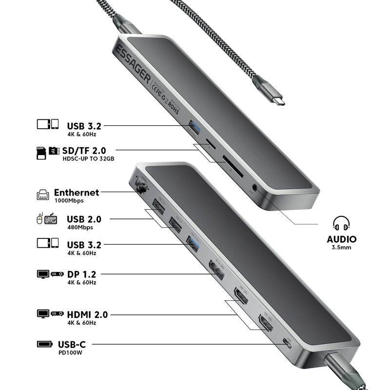 - 📦Lieferumfang: ESSAGER 12-in-1 HUB USB Type C