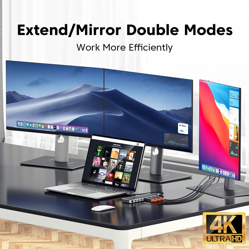 - ◾12-in-1 USB-C docking station: expand your computer or laptop with a USB-C hub. Ports can be extended as desired, and multiple devices can be connected via one port, making your work easier and more efficient. Useful and powerful extensions that are constantly needed.