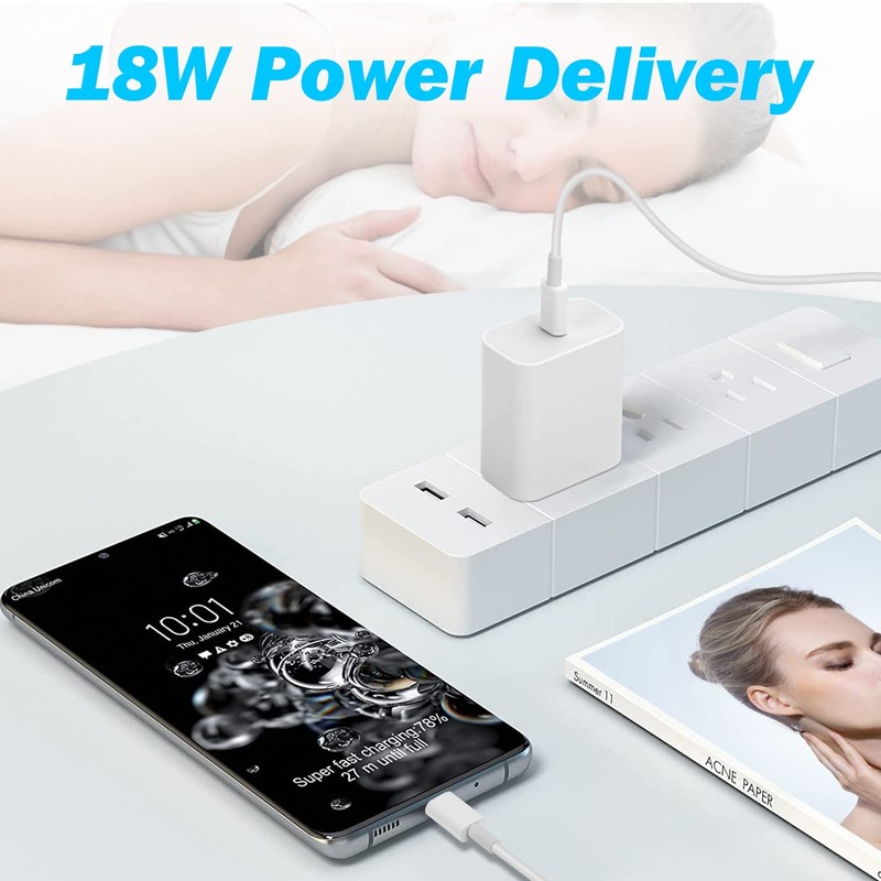 - Package Include: 1x 18W wall charger plug and 100W 1x 6.6-foot type-C to type-C (USB-C) cord.