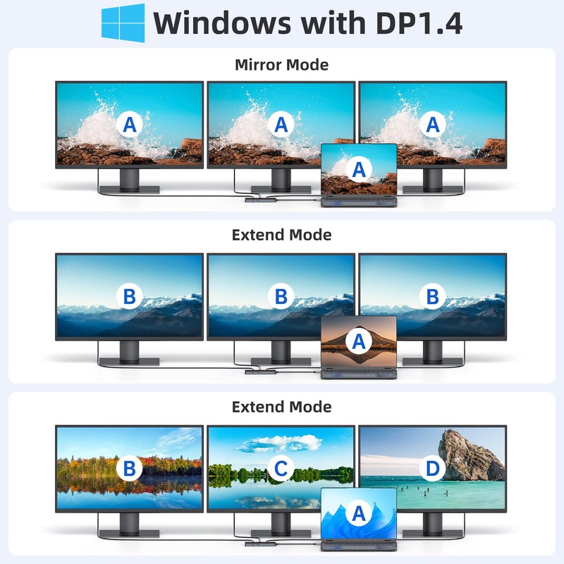 - 【2 HDMI+ 1 DisplayPort】 This 3 Monitor Docking Station Dual HDMI supports Windows MST and SST (Mirror and Extend Mode), NOTE: macOS DOES NOT support triple display, it only support mirror mode and non-mirror mode. Non-mirror mode means that the three external monitors are same but different from laptop.