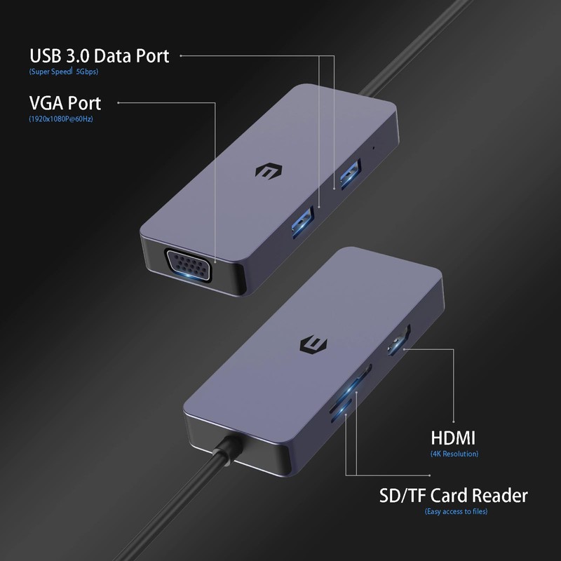- USB C Docking Station 6 in 1: With this docking station you can easily extend a USB type C port to VGA, 4K HDMI, 2*USB 3.0, SD/TF card reader. In addition, this docking station does not require driver installation, just plug and play to meet your daily needs.