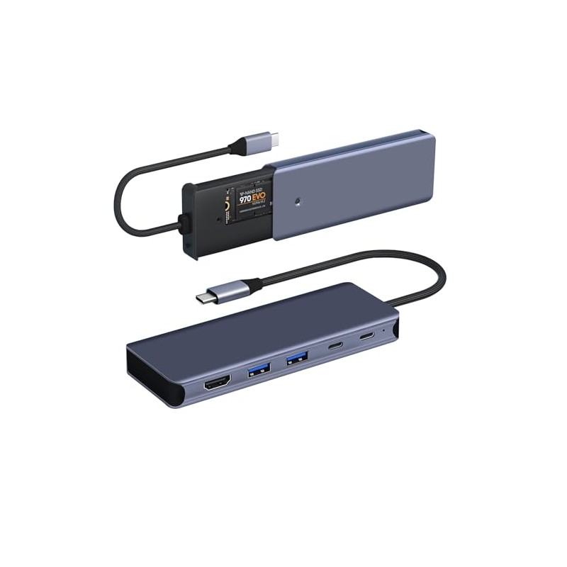 - 【6-in-1 USB-C Hub Combines M.2 NVMe SSD Enclosure】 The intelligent USB C hub adapter included 4K/60Hz HDMI port, 2 * 10Gbps USB 3.1 Gen2 ports, 10 Gbps USB-C DATA,100W PD charging ports. Combines the M.2 NVMe SSD enclosure and multi-functional TYPE-C adapter compatible for MacBook, Type C laptop, Samsung Note10/S10, Huawei P60/Mate60.