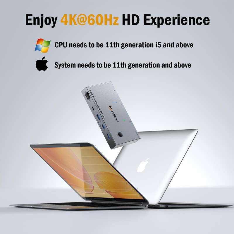 USB-C KVM Switch, 8k@60HZ KVM Switch 2 Monitor 2 Computers for 4 USB Devices,...
