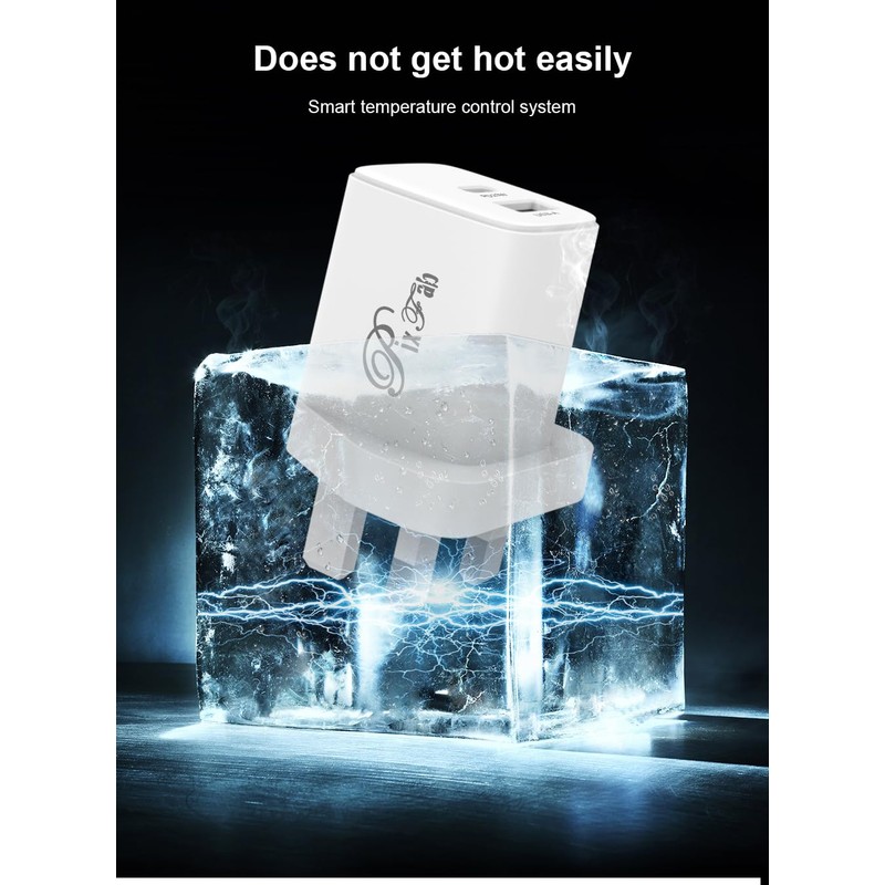 The Pixfab 20W Dual Port Wall Charger is a compact and efficient charging solution designed to power a variety of devices. It features both USB-C and USB-A ports, allowing you to charge two devices simultaneously. The USB-C port supports Power Delivery (PD) fast charging up to 20 watts, enabling rapid charging for compatible devices. The USB-A port supports Qualcomm Quick Charge 3.0, providing up to 18W fast charging for compatible devices.