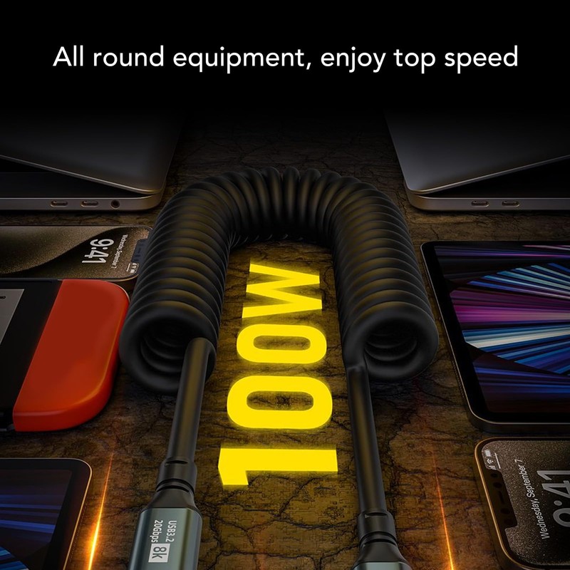 USB C to USB C Cable 100W, 20Gbps 8K 60Hz Spring Coiled Data Cord, 180cm Stre...