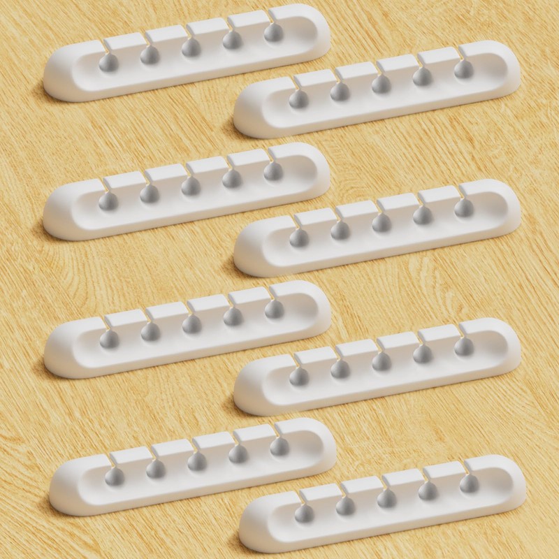 USB Cable Organizer Clips Cord Holder,8 Packs (5-Slots) White Self Adhesive Desk Cord Cable Management