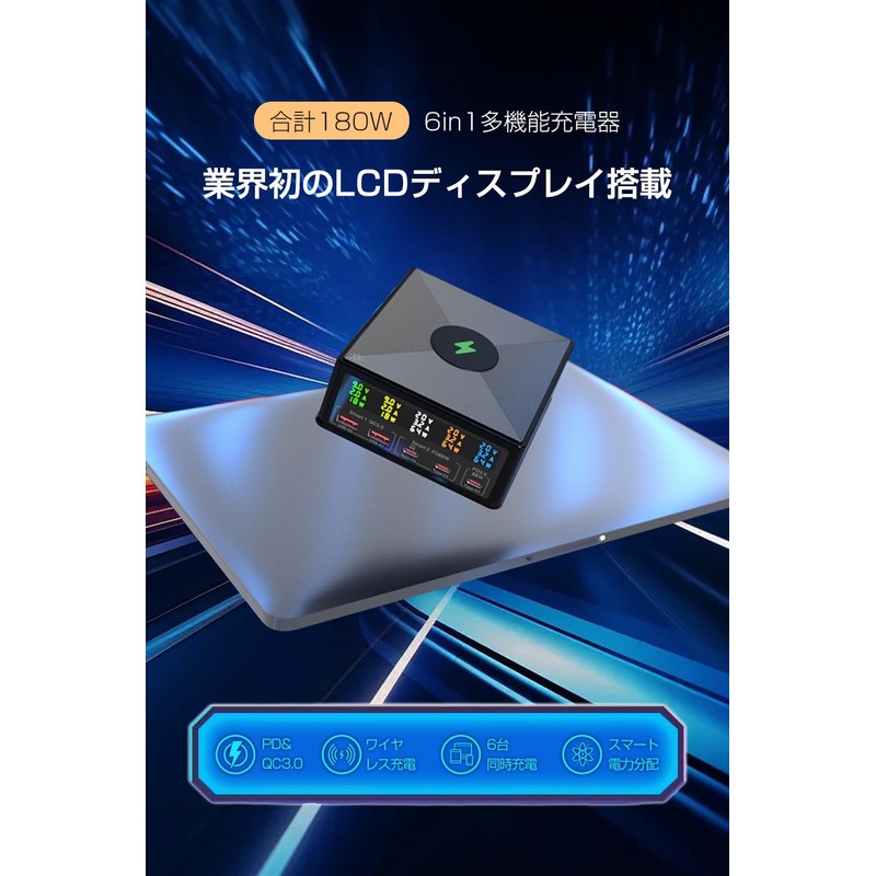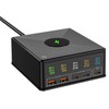 - 6 in 1 unit with a total of 180 W high output: This USB charger features 3 USB-C ports, 2 USB-A ports and wireless charging, and a total output of 180 W. One can charge up to 6 devices simultaneously. Smart charging function allows you to connect multiple devices at the same time with the fastest and best output