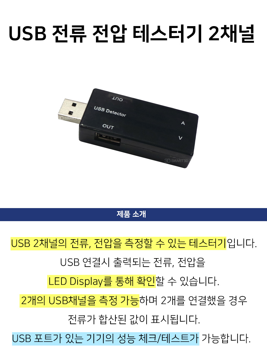 USB current voltage tester 2-channel mobile phone battery 3D pen Arduino computer / USB 전류 전압 테스터기 2채널 휴대폰 배터리 3D펜 아두이노 컴퓨터