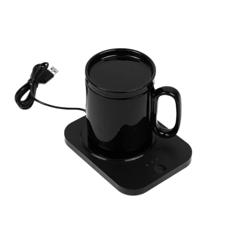 - Simply place your mug on the center of this desktop device and with a push of a button, keep your drink from getting cold as you get through your day.
