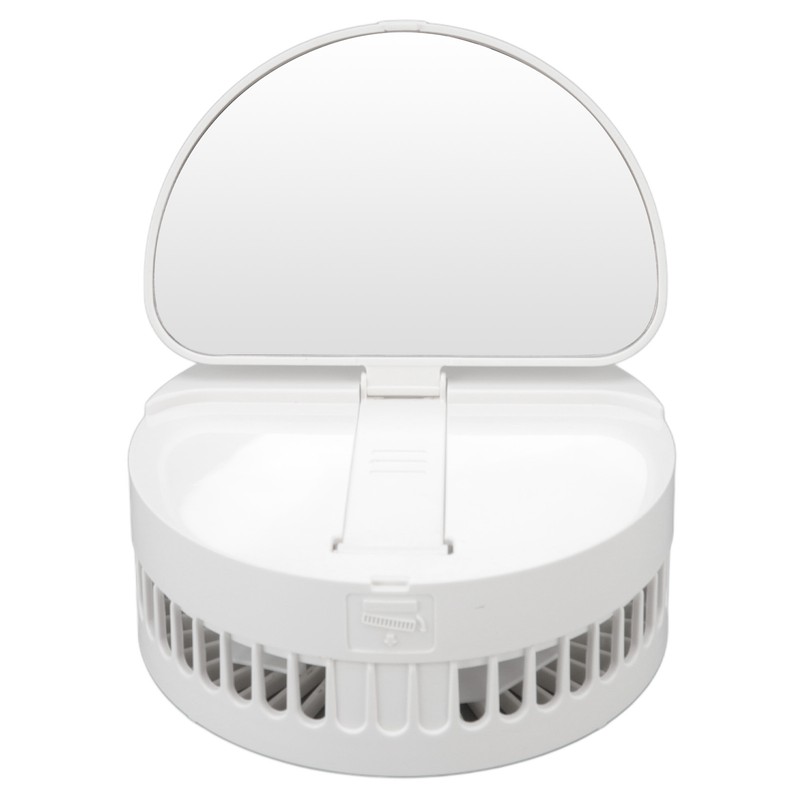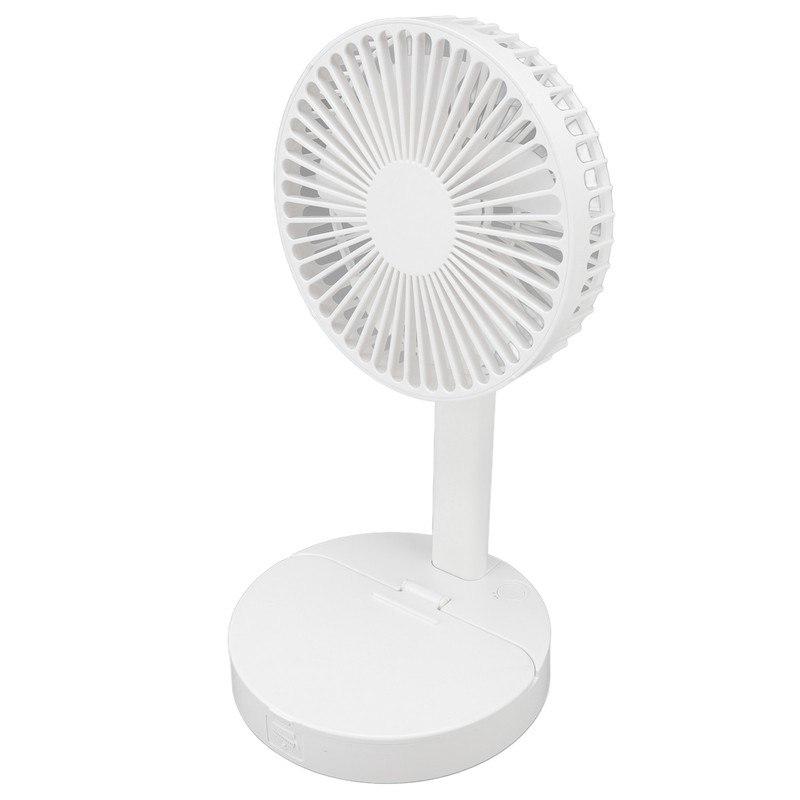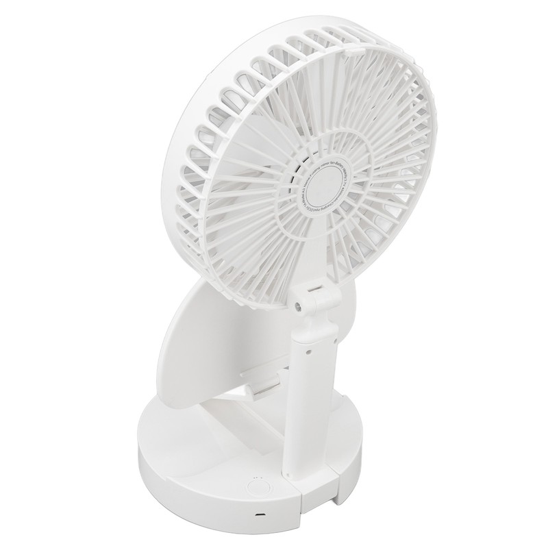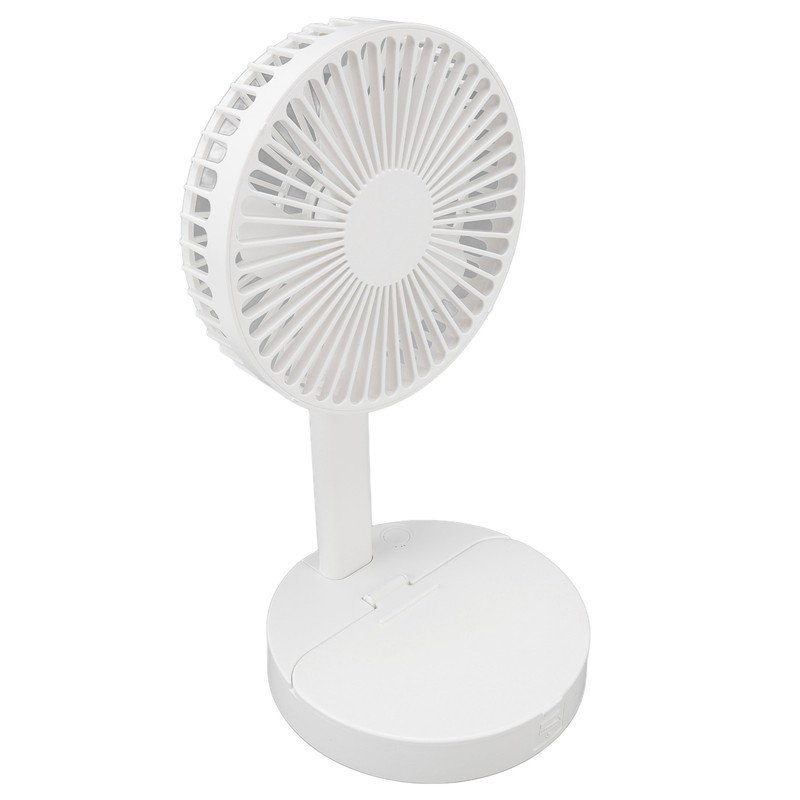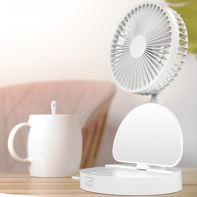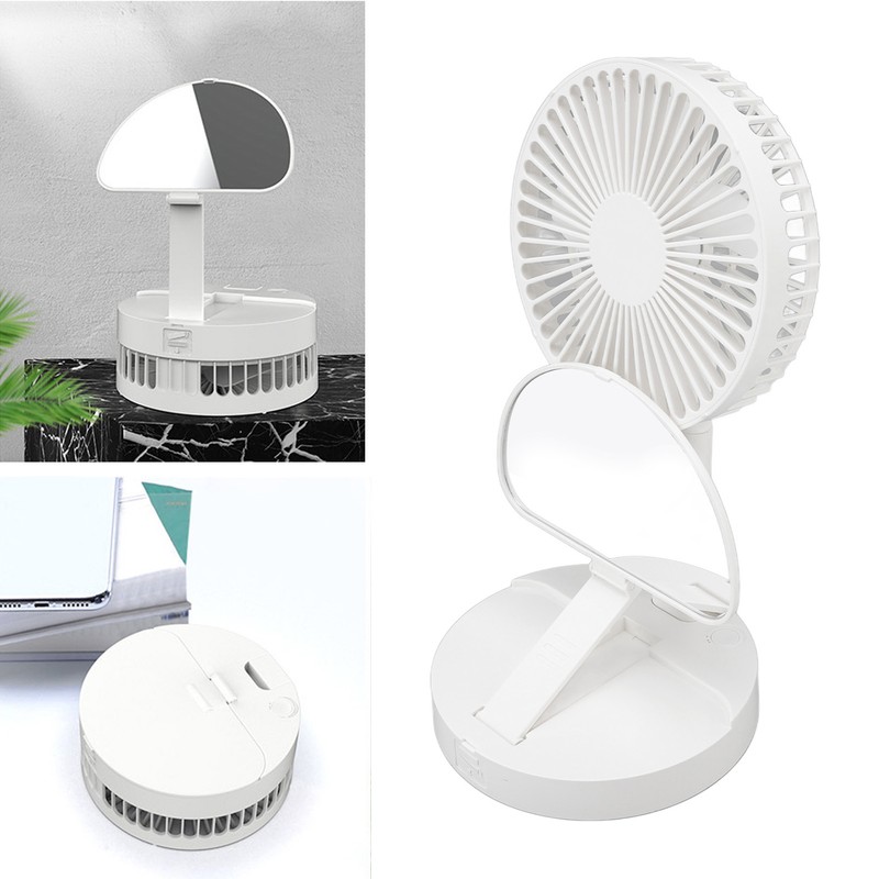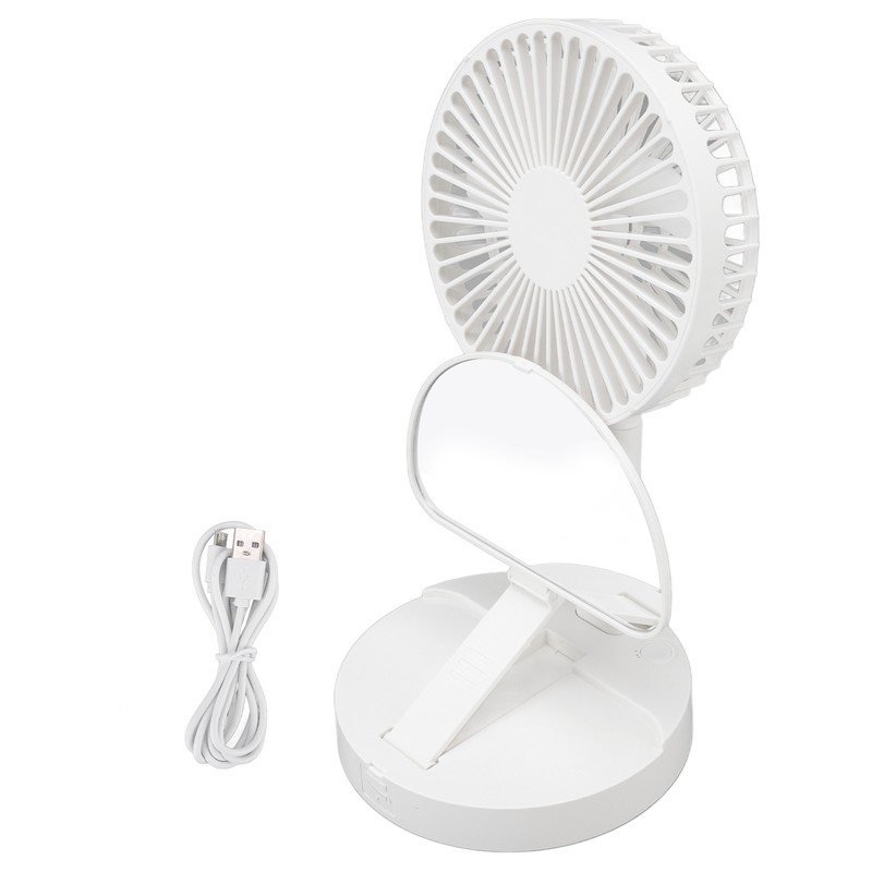 USB Desktop Fan Foldable Rechargeable Battery Makeup Mirror Function Bottom Silicone 3 Speeds White Mini Fan
