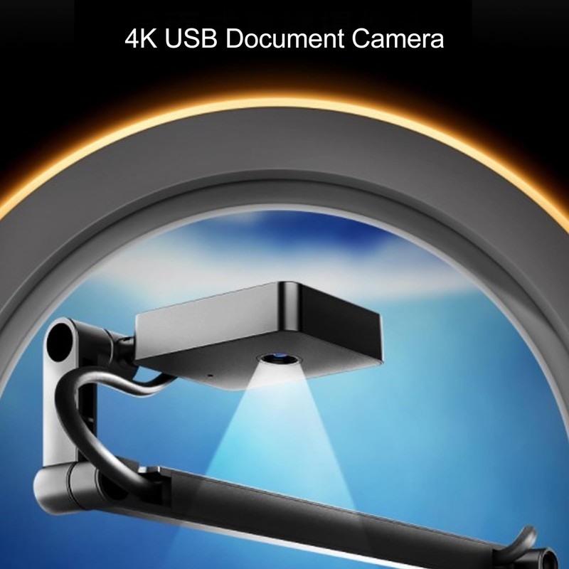 USB Document Camera, 4K Ultra HD USB Visualizer A3 Size, Auto Focus, Image Invert, 360° Rotating Lens, 3 Level LED Light, Built-in Microphone, for Windows