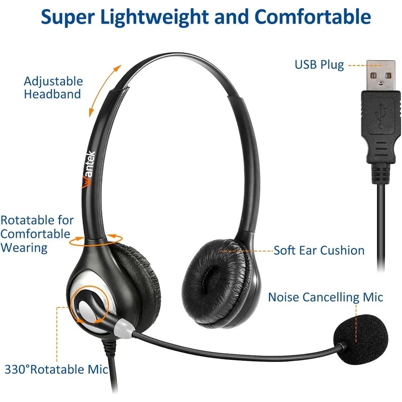 USB Headset with Microphone, Headset with Mic Noise Cancelling for PC and Mute Volume Adjustment Control Switch, Ultralight Computer Headphones with Microphone for Call Center Office Skype Zoom