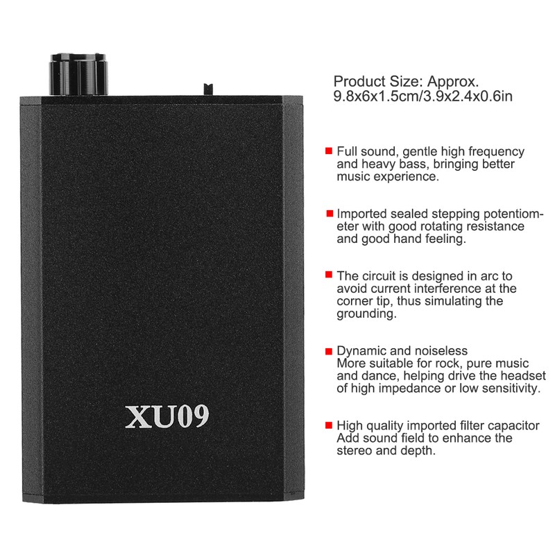 1、Full sound, gentle high frequency and heavy bass, bringing better music experience. 2、Imported sealed stepping potentiometer with good rotating resistance and good hand feeling. 3、The circuit is designed in arc to avoid current interference at the corner tip, thus simulating the grounding. 4、Dynamic and noiseless, more suitable for rock, pure music and dance, helping drive the headset of high impedance or low sensitivity. 5、High quality imported filter capacitor, adding sound field to enhance the stereo and depth. 6、Adopt full repair program, mechanical welding, stable performance. Background noise is largely inaudible when the volume is turned to maximum (mute).