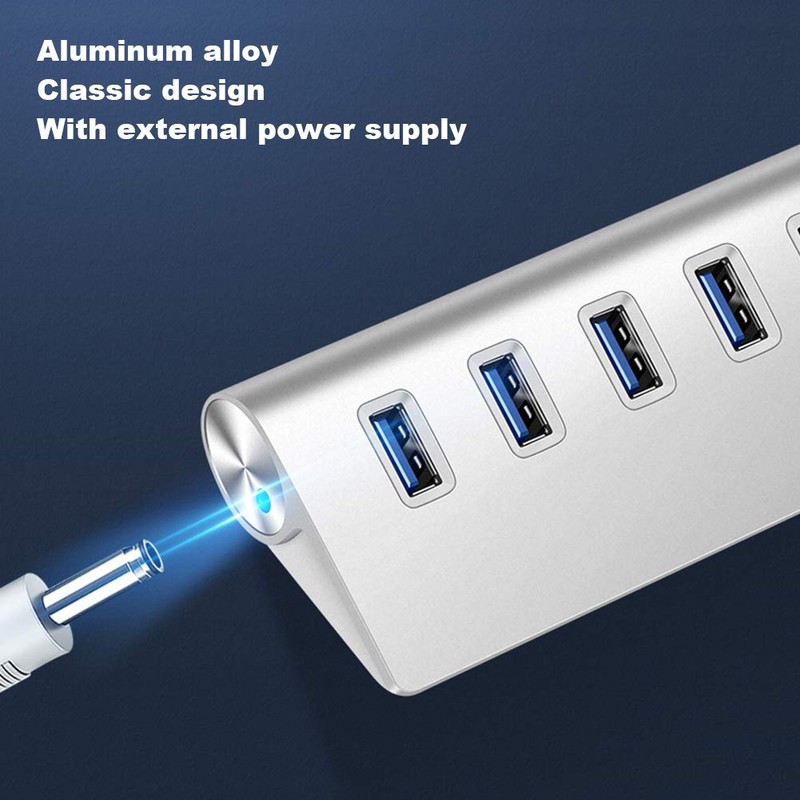 USB Hub 3.0 Splitter, 7 Port USB Data Hub Charging Docking Station for Laptop, PC, Computer, Mobile HDD, Flash Drive and More