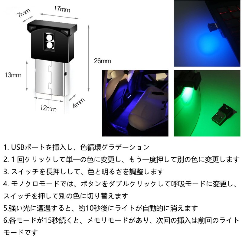USB Light, Mini LED, Car Light, RGB, 7 Colors, Switching Function, Automatic Lighting, Dimmable Function, Light Sensor, USB Powered, Ambient Light, Illumination, Small, Lightweight, Pack of 1