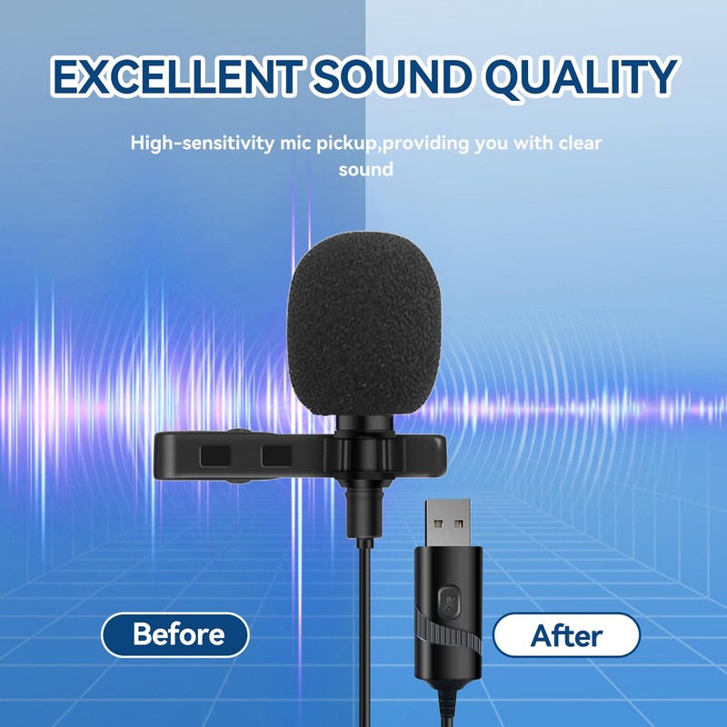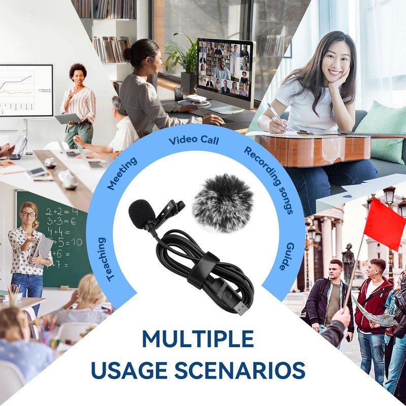 - Widely Use: You will get: 1 x usb 59in audio cable mic, 1 x metal lapel clip, 1 x foam windscreen, 1 x lapel furry microphone muff, this usb clip on computer microphone can use for vocal, audio, or video recording, good for sound or film recording, television, auditorium, conducting podcasts and classroom use