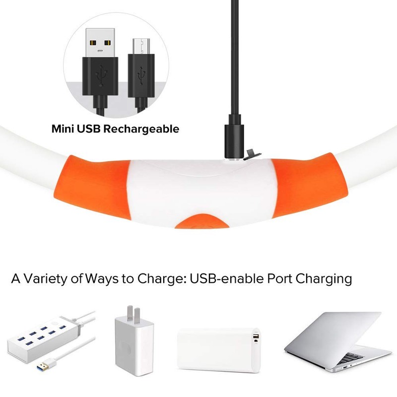- 💕💕EASY TO WEAR: Just pull one ends of the TPU tube, and wear it on your dogs’ neck, then squeeze that end back into the collar again, and changing the flash modes by pressing the silicone power button.
