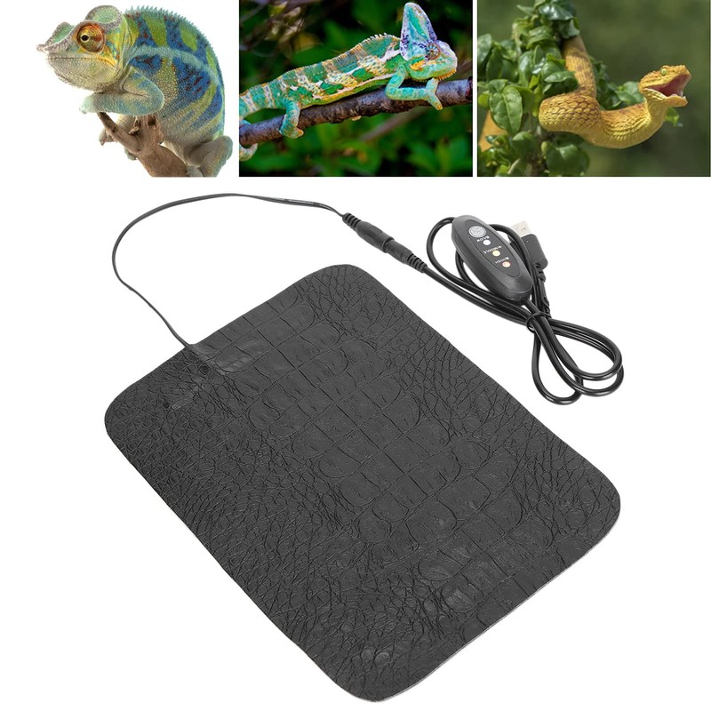 USB Reptile Heat Pad, 3 Level Temperature Control, Heat Mat for Lizards Snakes Turtles, PU Leather, Stimulate Appetite and Metabolism, Easy to Clean, Pet Accessory