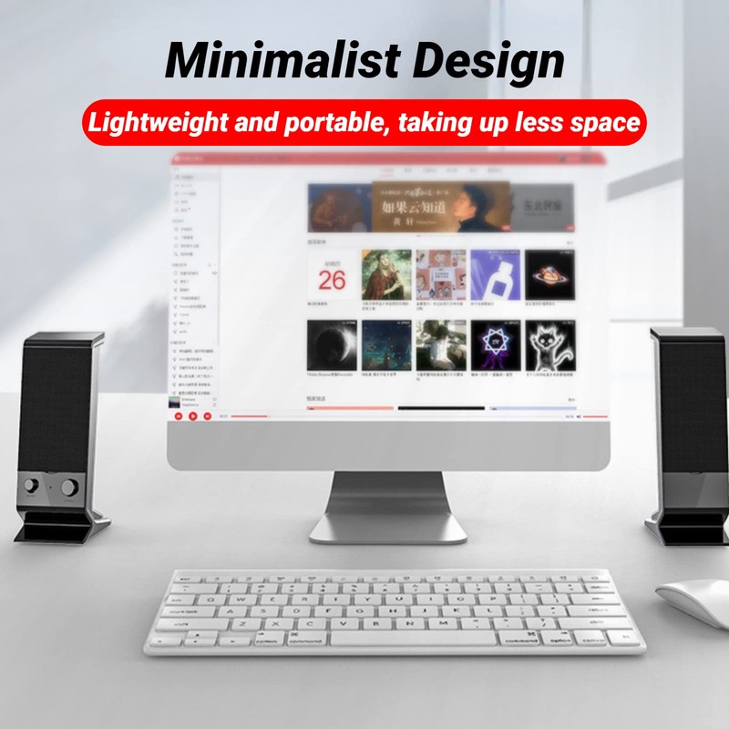 USB Speaker, Portable USB 2.0 Bass Combo Speaker, Rich Bass, 3.5 mm Input, Minimalist Design, PC Speaker for Mobile Phones, Laptops and Computers