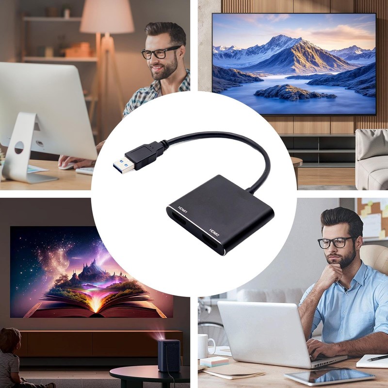 USB to HDM I Adapter, USB 3.0/2.0 to HD Audio Video Adapter, 2 HDM I Splitter Hub Converter for 1080P Large Screen Multi-Display, Computer, Desktop, Laptop, PC, Monitors, Projectors, HDTV