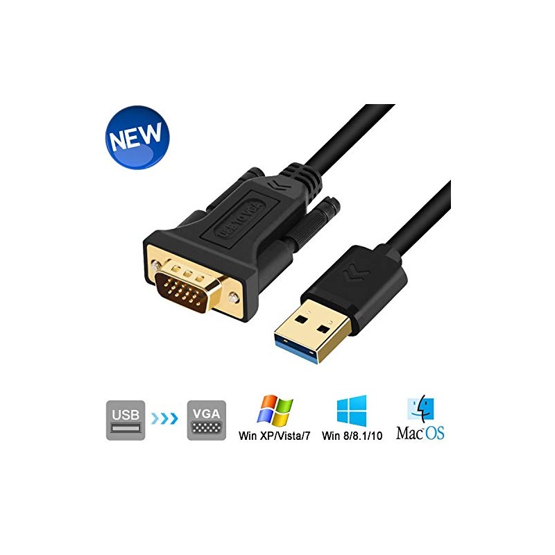 - 【USB to VGA adapter cable】Connects a USB-enabled devices (such as laptop, desktop) to a VGA-enabled devices( such as monitor, projector, TV). A cost-saving double-monitor or dual-display option. No additional USB-VGA adapter or VGA cables required.