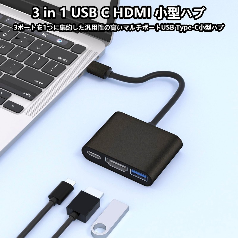 - 【3-in-1 USB Type C Extender Adapter】This versatile multi-port USB Type-C adapter combines 3 ports in 1. 1 USB-A port, 1 PD USB-C charging port, 1 HDMI port Connects a variety of peripherals with one Type-C port. The main unit is made of aluminum alloy with excellent heat prevention and safety. Lightweight design makes it easy to carry. Note: For small devices such as smartphones, the Type-C port must support video output function in order to use the HDMI function. ]