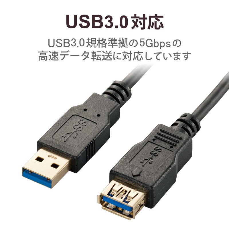 エレコム USBケーブル 延長 USB3.0 (USB A オス to USB A メス) スリム 2m ブラック USB3-EX20BK