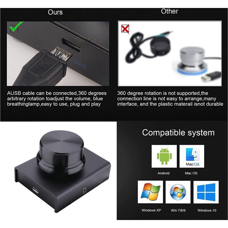 - ✔Plug and play: This USB volume controller supports Win10/8/7/Vista/ XP/Mac/Android/IOS, it can work just after connect well with the computer, Plug and play, no driver required, you can directly adjust the volume by rotating the knob.