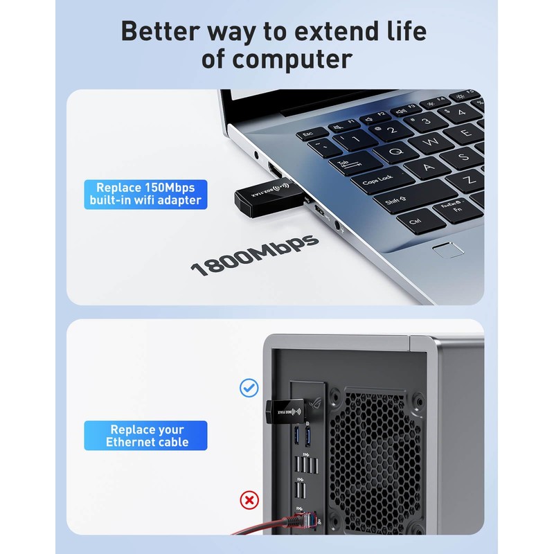 - Tiny Design USB WiFi - Avoid blocking adjacent USB interfaces,only we have 1800mbps nano pc wifi adapter,others are lower speed.With 5GHz and 2.4GHz wifi receiver getting fast wifi connection.easy for travel to get fast wifi connnections with wifi 6 network adapter wireless usb wifi adapter for pc.