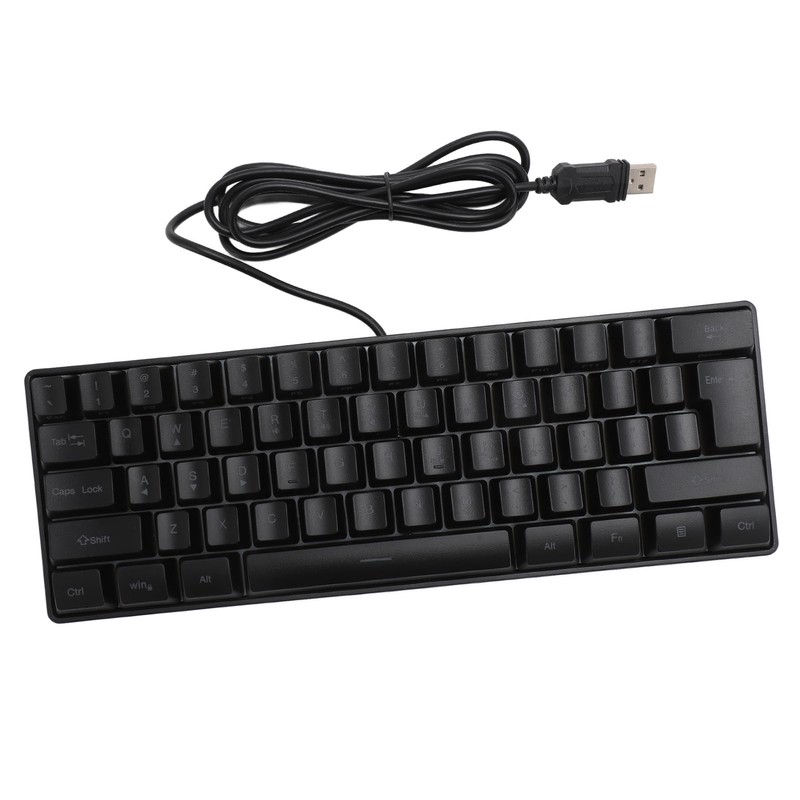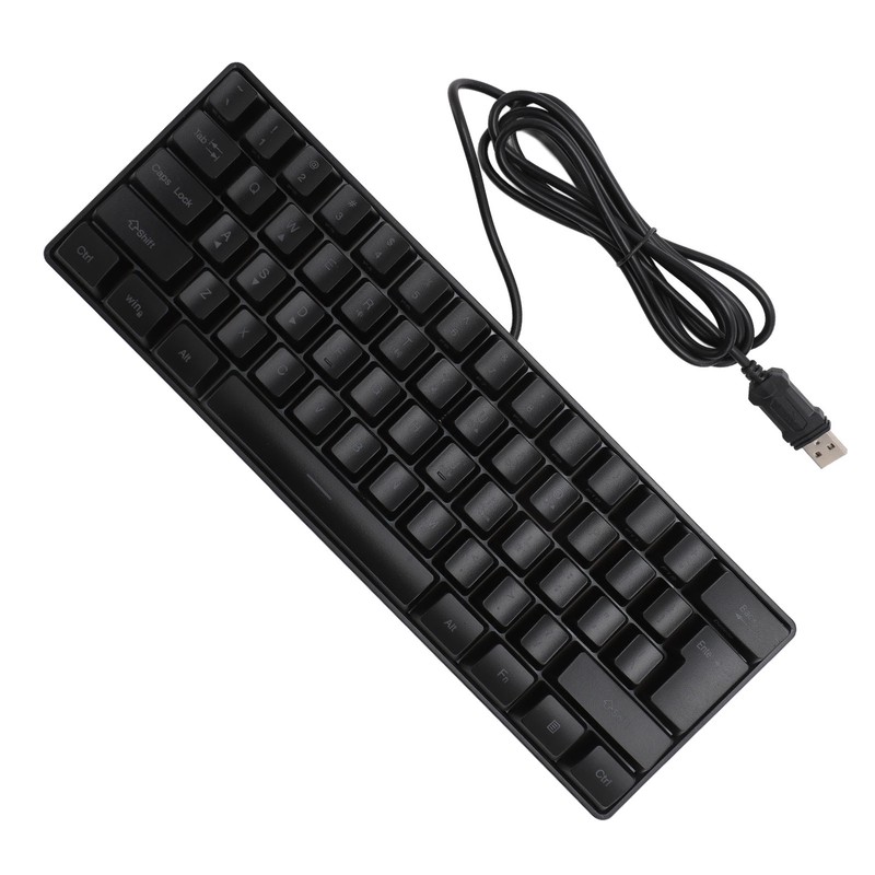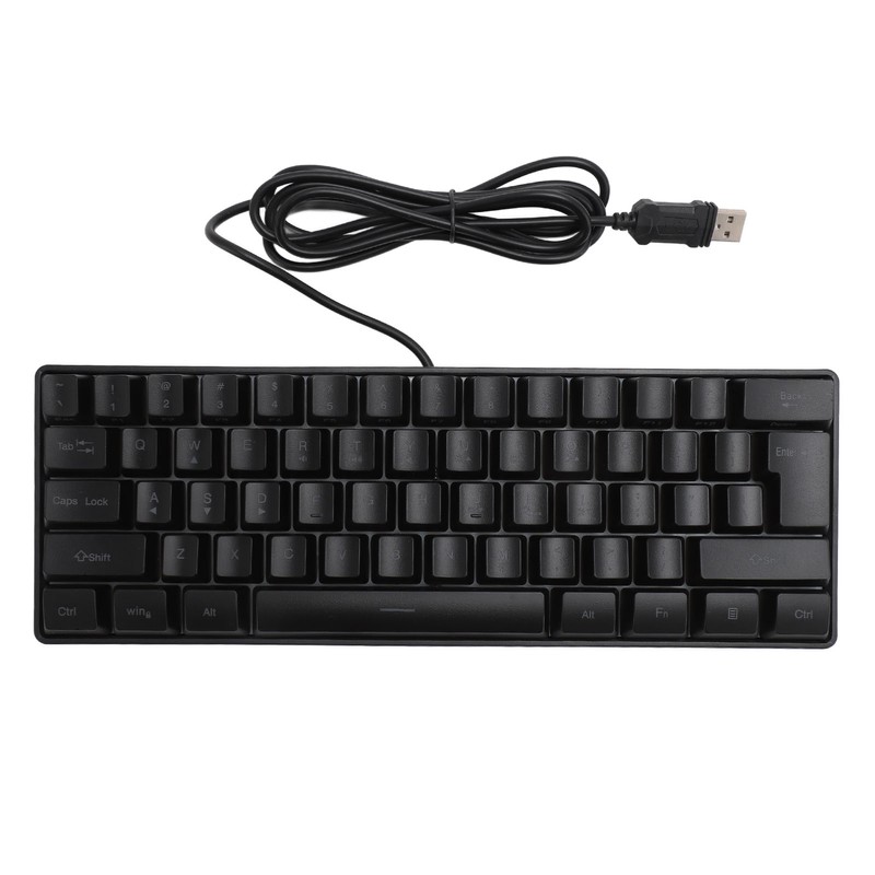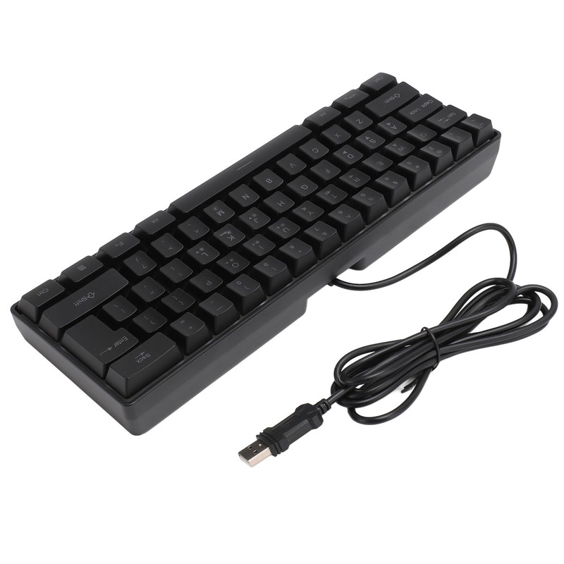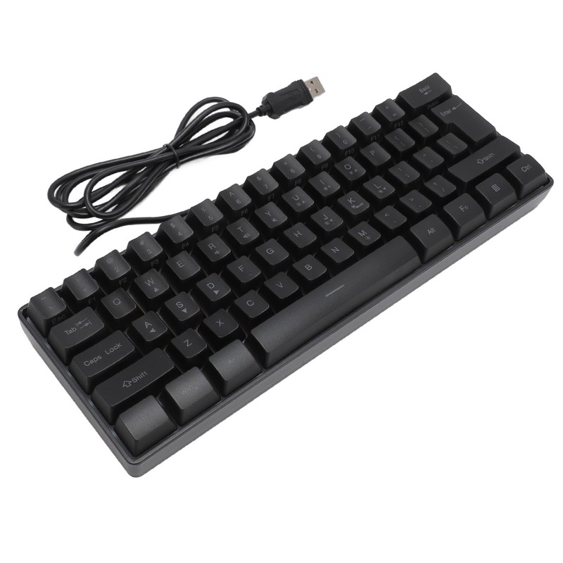 USB Wired Gaming Keyboard 60 Percent RGB Backlight 61 Keys Portable Compact Keyboard for PC Gamer Typist Black