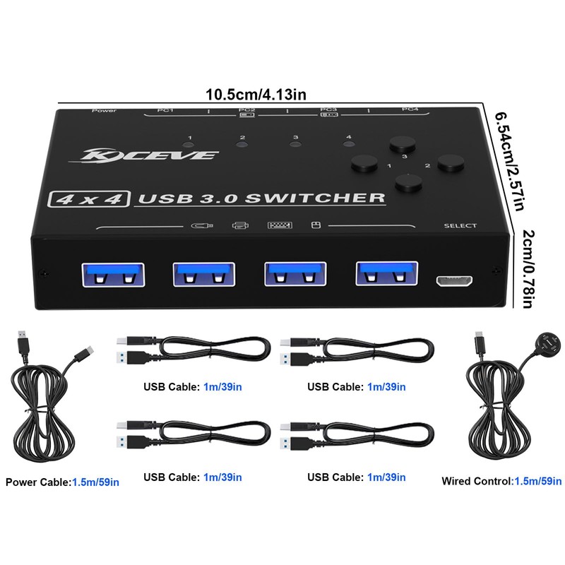 USB3.0 Switch, USB Switcher 4 Computers for Printer Scanner Keyboard Mouse Switch, USB-B Switch, USB Switch Selector with Wired Control and 4 USB Cables…
