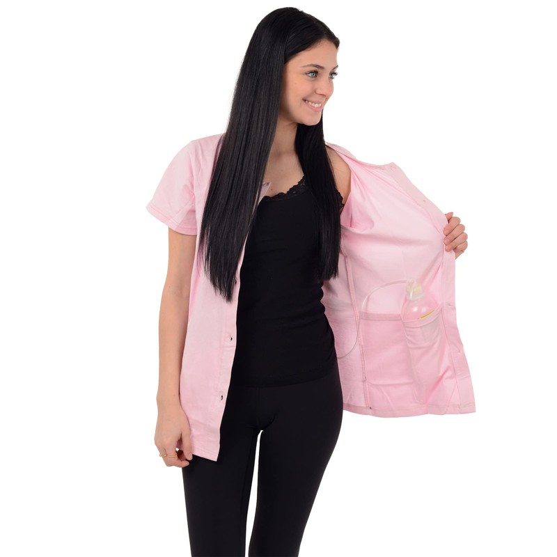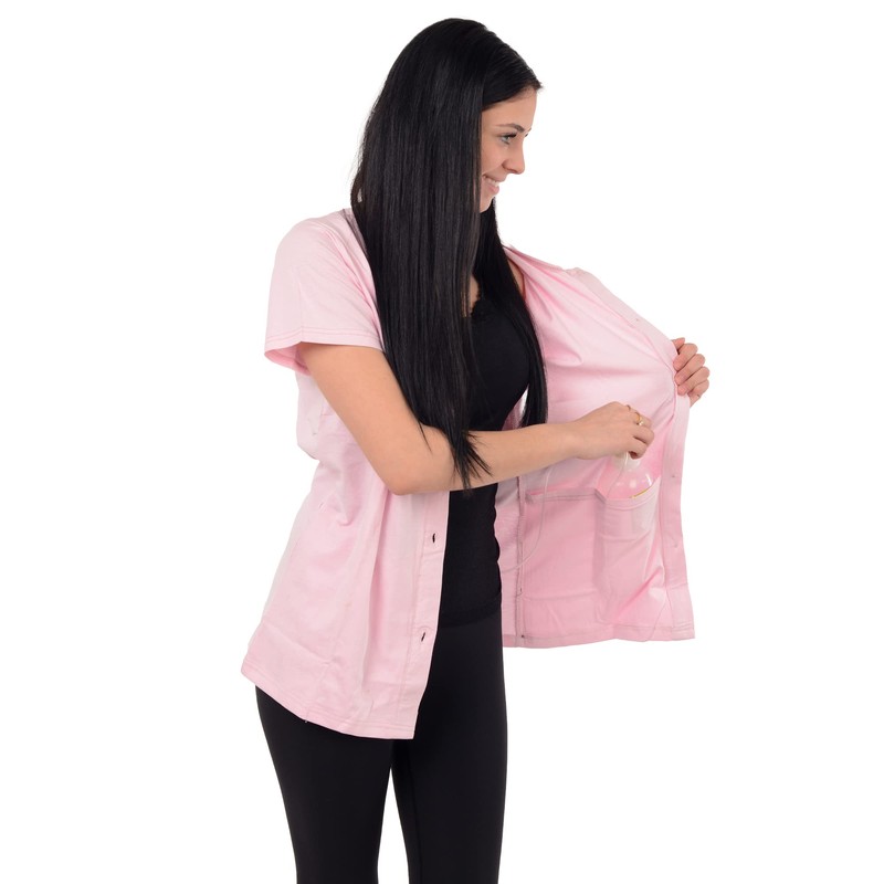 USBD Crew Neck Post Mastectomy Shirt with Drain Pockets (Small, Light Pink)