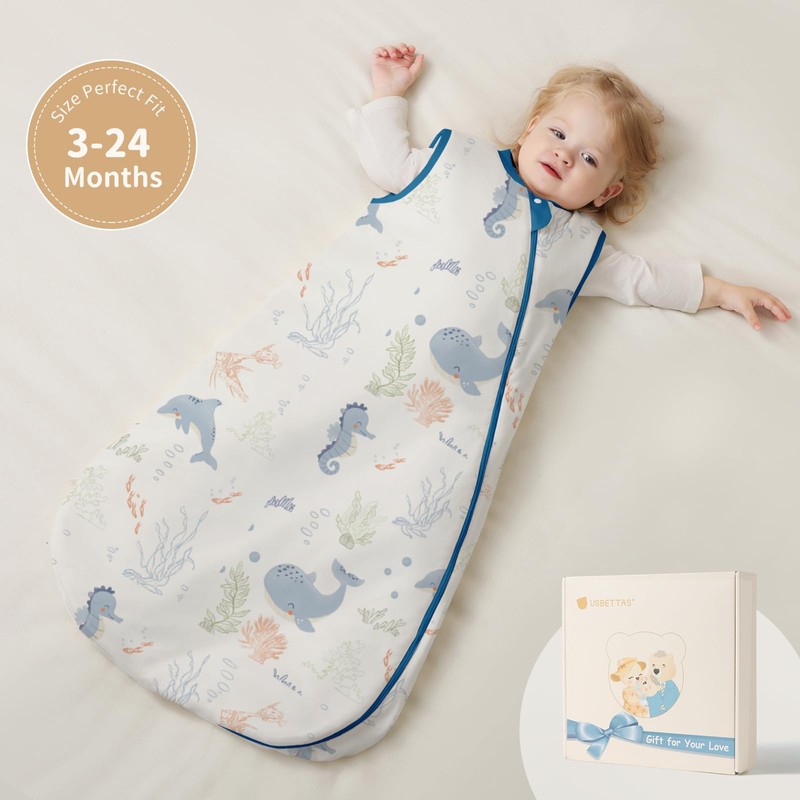 - Cozy&Soft: usbettas 2.5 tog baby sleep sack is made of 100% cotton inner and outer layers, providing an ultra soft touch. The filling is 79% polyester fiber and 21% viscose fibre (Tempsense), which can smartly absorb or release heat according to the temperature, ensuring your baby stays comfortable while sleeping;