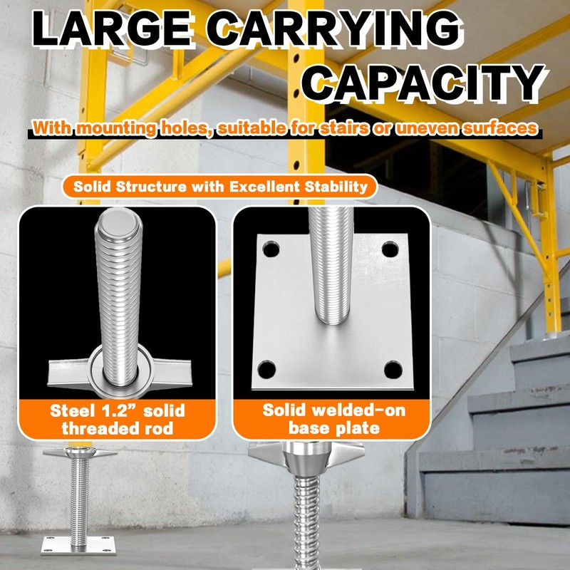 • 18" Adjustable Leveling:The 2 pack scaffold screw jack features a maximum 18" adjustable leveling range.allowing you to easily adjust the height of the jack to meet your specific needs
