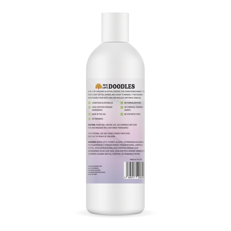 USDA Organic Dog Conditioner & Detangler, 2-in-1 Conditioner for Allergies & Itching, Made in USA, Lotion Treatment for Dogs, Perfect for Poodles, Doodles, & Goldendoodles, 16oz [We Love Doodles]