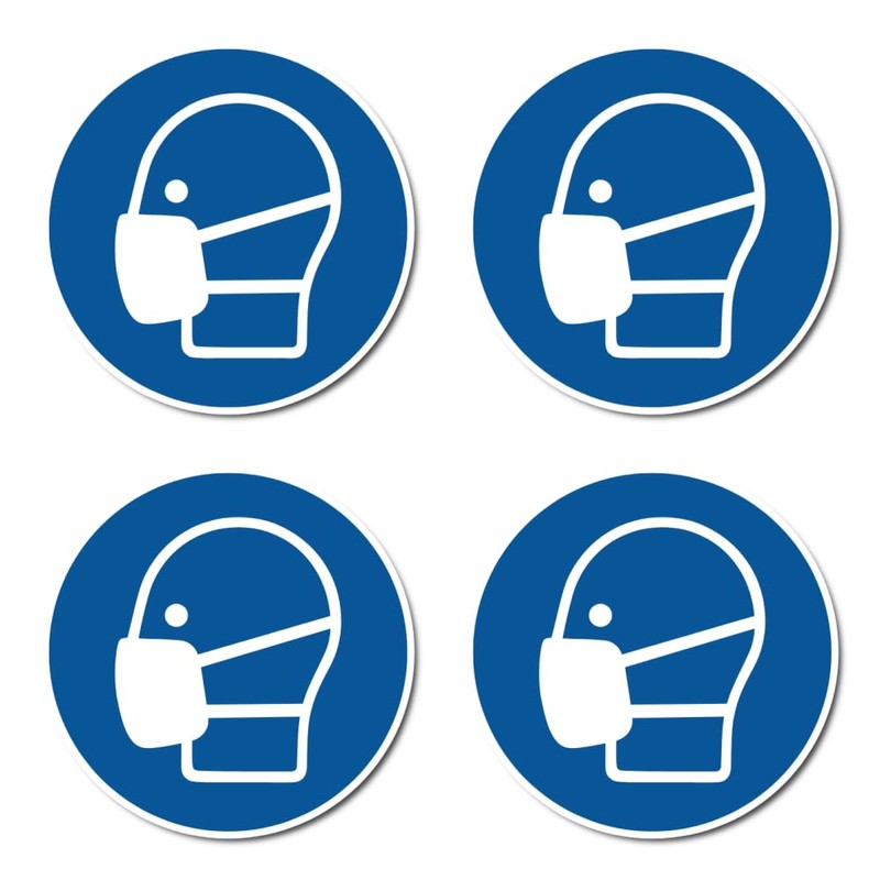 Use Mask, Mandatory Sign: M016 - DIN EN ISO 7010 / ASR A1.3 - Sticker: Diameter 7.5 cm, Pack of 4