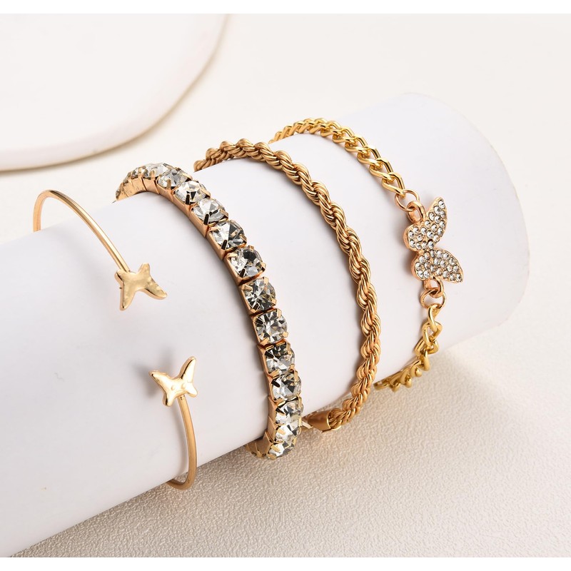 - Adjustable Women Gold Bracelets: You will get 4Pcs different styles bracelets, CZ bangle, butterfly bangle, twist chain, butterfly chain. Can combine and match them as you wish.Different styles meet your daily needs