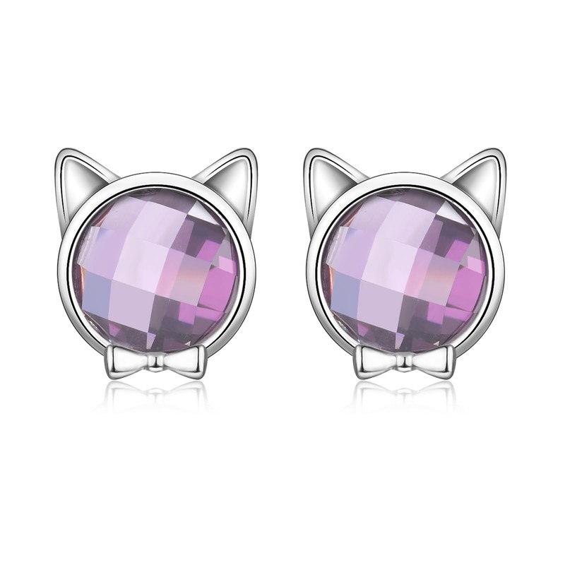 - ✨Cute Cat Stud Earrings✨ This cute sterling silver stud earrings inspired from cat face, with brilliant purple AAA+ cubic zirconia, sparkling and sustainable can add extra shine to your daily outfits. Cute and stylish desgin makes you more beautiful and attractic.
