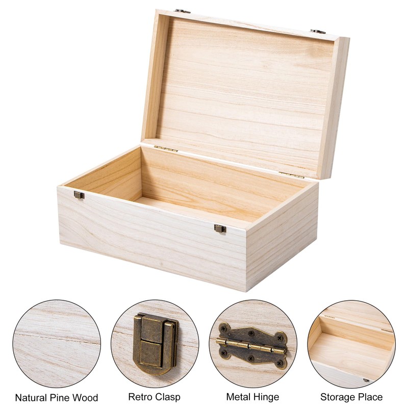 - Solid Nature Wood: Our large wooden box with hinged lid is made of high-quality and durable natural wood, which is compact and sturdy with strong bearing capacity, not easy to crack and deform