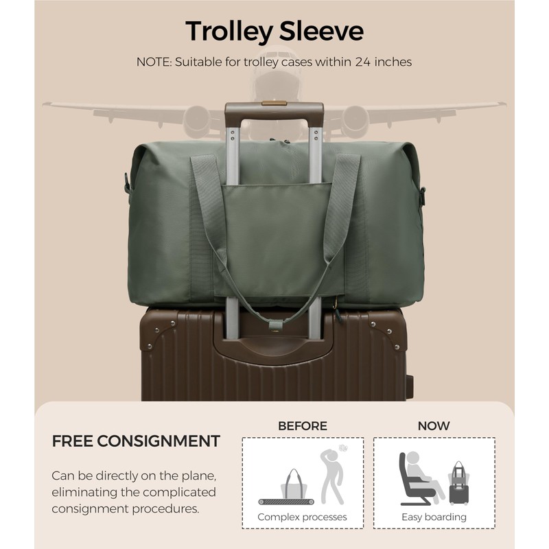 - 𝐋𝐚𝐫𝐠𝐞 𝐂𝐚𝐩𝐚𝐜𝐢𝐭𝐲 : This size of this weekender bag for women is 50.8*25.4*27.9CM/20*10*11 inches and conforms to most weekender requirements. The back trolley sleeve is use with luggage, saving effort and making it easy to move.