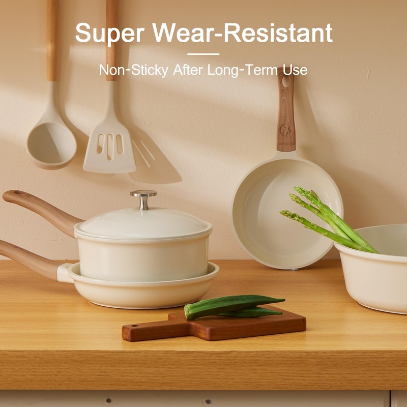- 【Effortless Cleaning – No Sticking, No Scrubbing】Our ceramic cookware cleans up in seconds—simply rinse or wipe with a sponge. Hand wash is recommended to maintain coating longevity