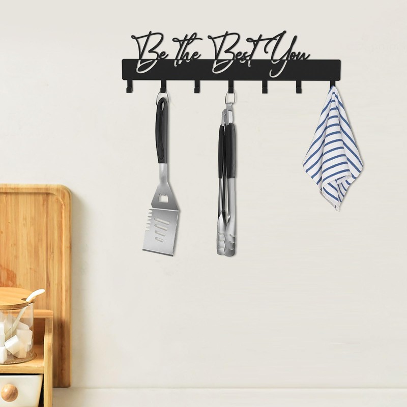 useNumber Be The Best You Key Hooks for Wall,Delicate Fashion Black Metal Key Holder Wall Mount,Be The Best You Key Hanger with 7 Kooks for Wall Decoration,Hallway,Office
