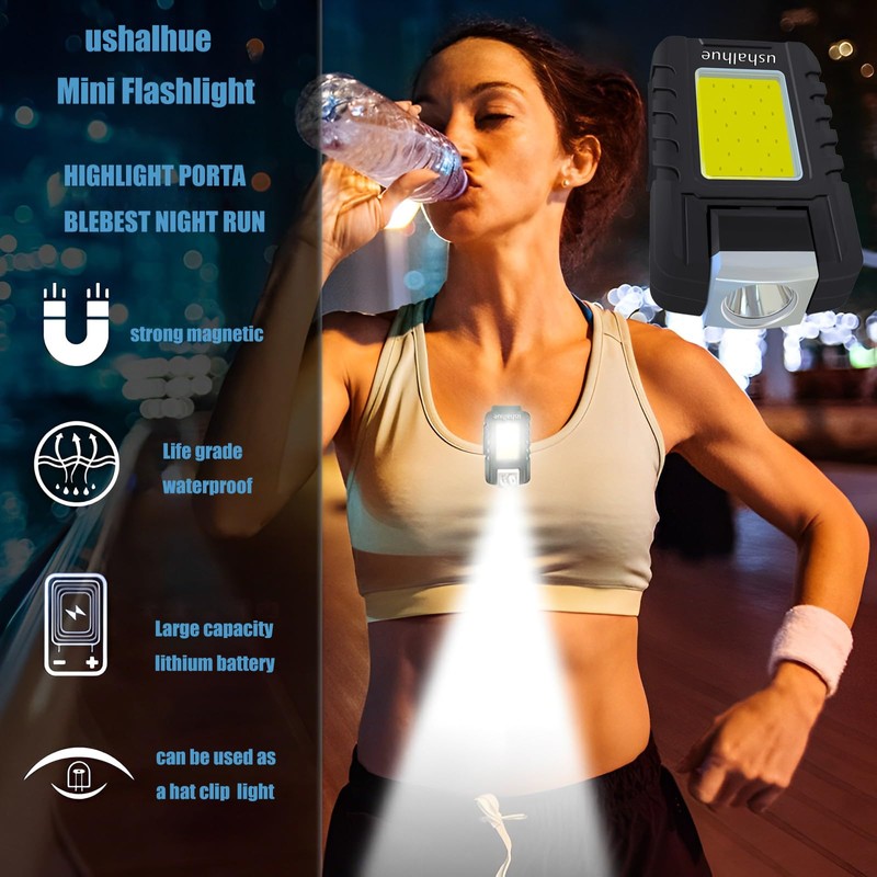 ushalhue Mini Flashlight 500 Lumens Rechargeable Handheld Flashlights,Key Light 180°Rotatable Headlamps,6 Modes,Waterproof Design,for Camping Hiking Running