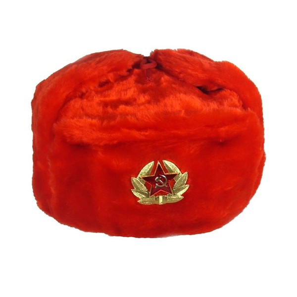 - Russian winter hat - "Ushanka". Military style with Soviet Red Star badge.