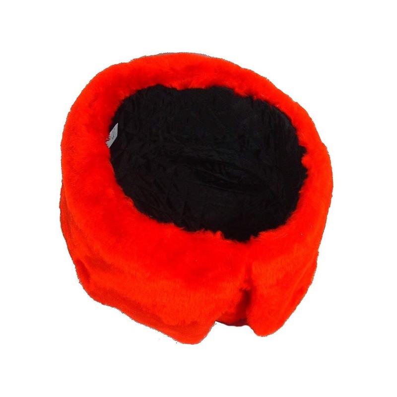 - Faux-fur, inside it has black satin and is well padded. 3 ways to wear. It has flaps on the side and back that come down to cover your neck. It's perfect for men, women, and kids.