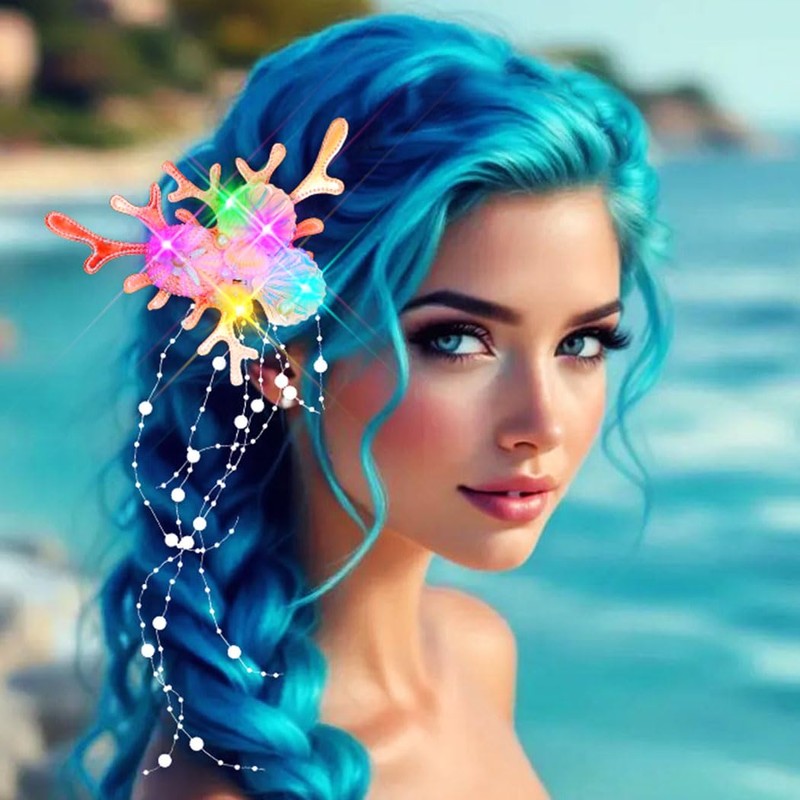 - Light on mermaid hair clip are made of plastics, beads and shell decorations