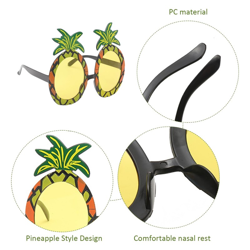 - [Fun design] This sunglasses has a unique design, pineapple shape, bright colors, and full of summer atmosphere. It is an ideal choice for Hawaiian parties, beach activities, pool parties and other occasions, making you the focus of attention in the party.